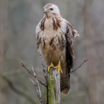 De buizerd is verreweg de algemeenste en meest opvallende roofvogel van Nederland, die je vaak in open land ziet, zittend op een paal of schroevend op de thermiek. Buizerds zijn erg gevarieerd qua kleur en tekening. Van donkerbruin tot bijna wit. Hij heeft zich de laatste decennia sterk uitgebreid als broedvogel en broedt ook in het Brabantse landschap.