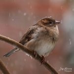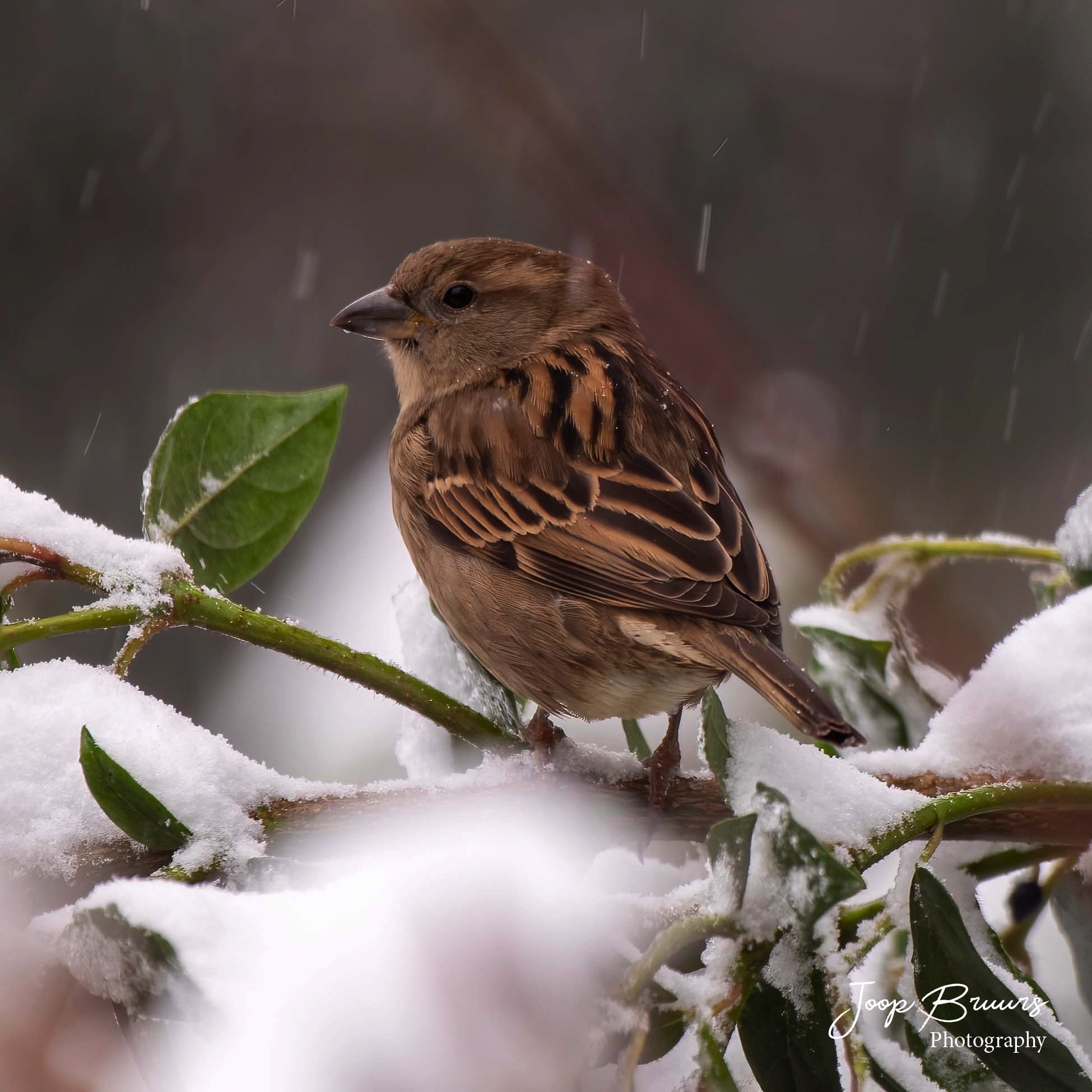 Algemene en zeer bekende broedvogel in dorpen en steden. Stevig gebouwd, met grote snavel en verhoudingsgewijs grote kop. Mannetjes en vrouwtjes verschillen sterk, waarbij de mannetjes veel donkerder gekleurd zijn.